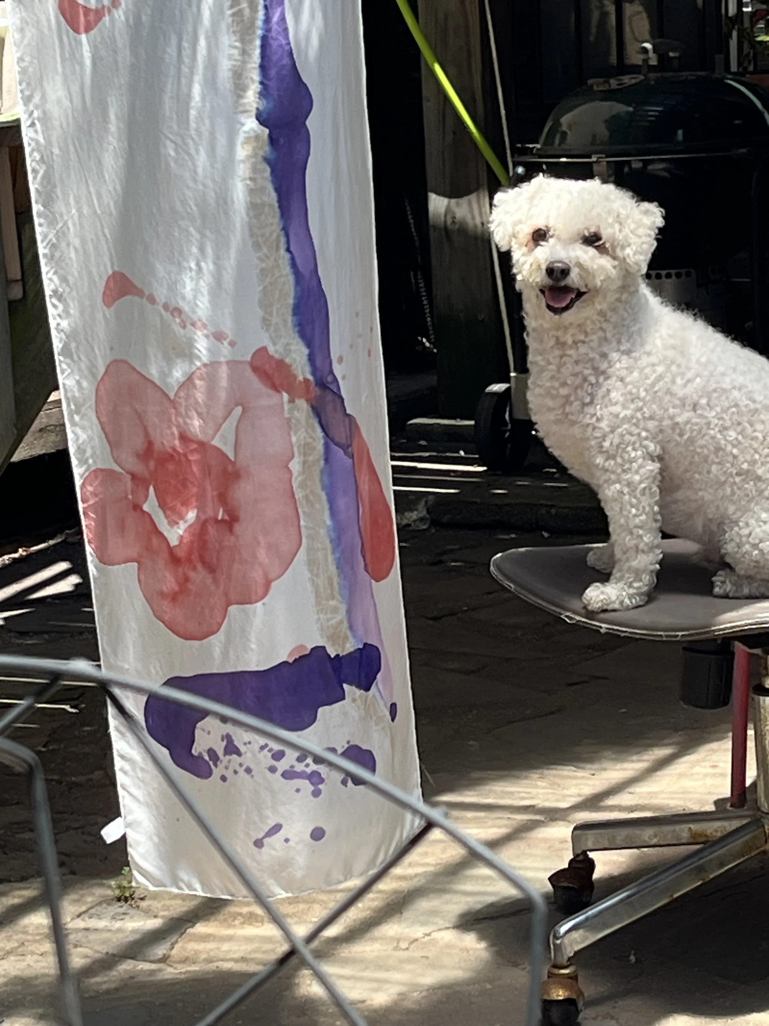 Painting on sheer silk is her current obsession. Stay tuned for new developments from