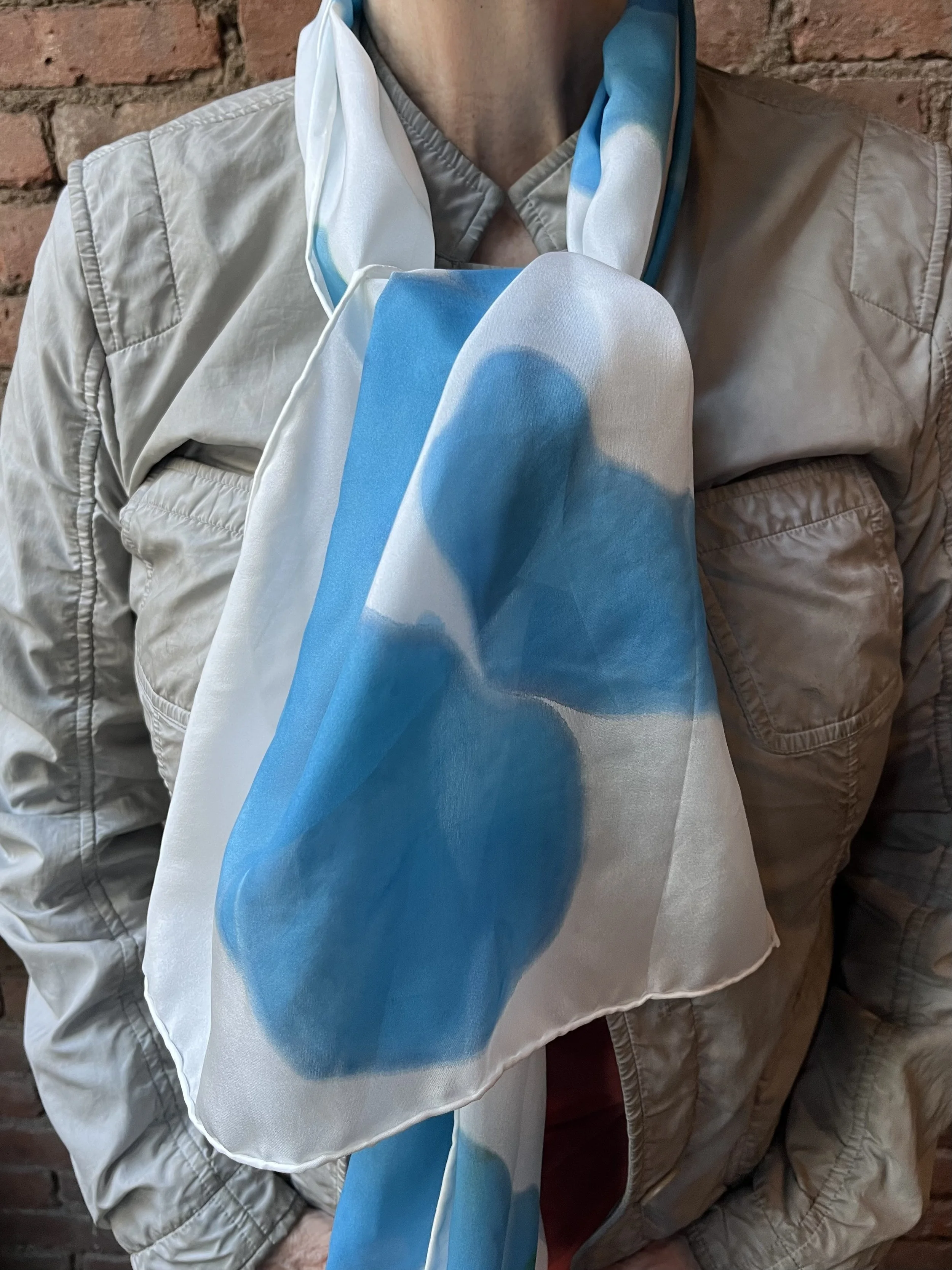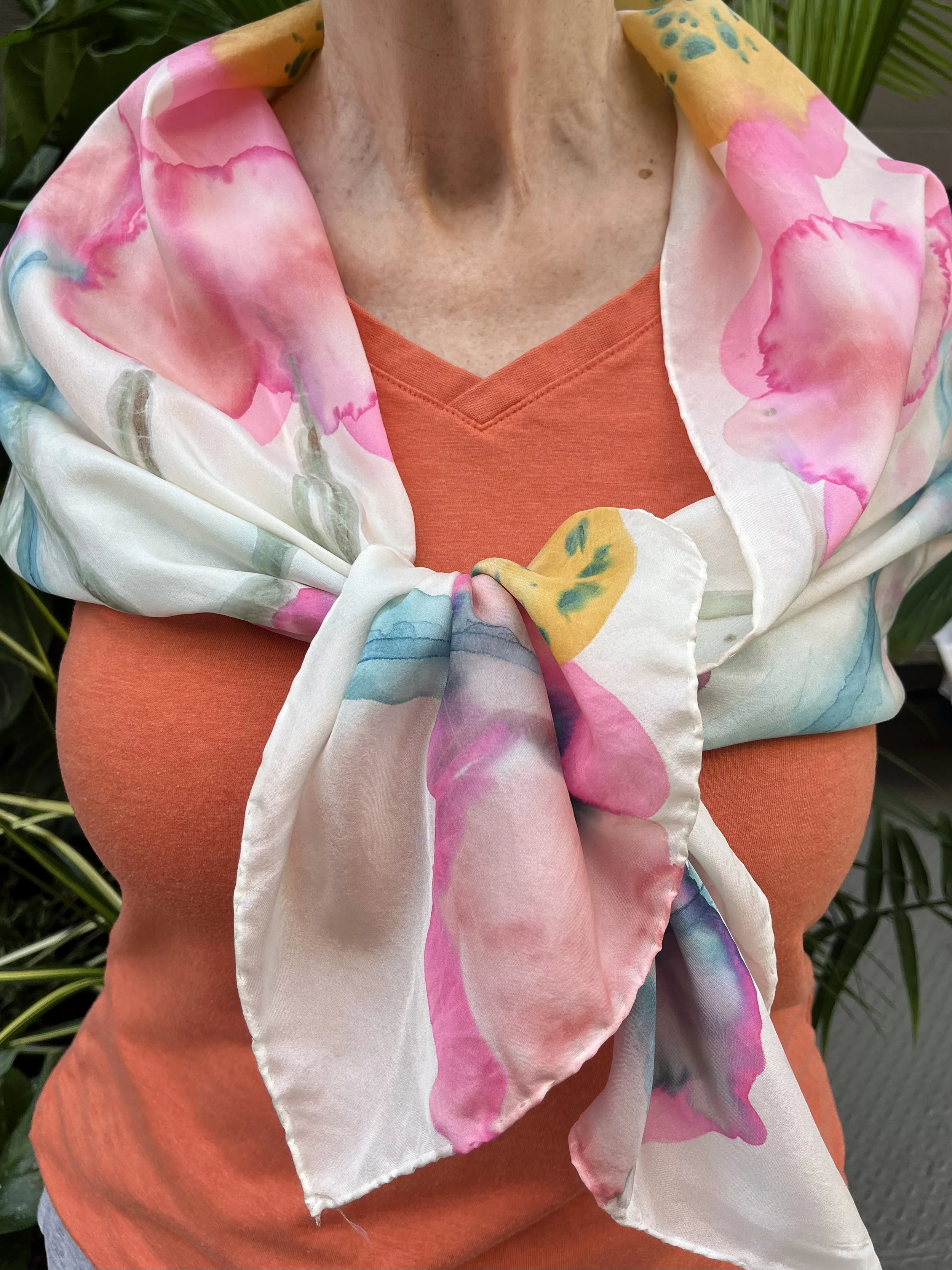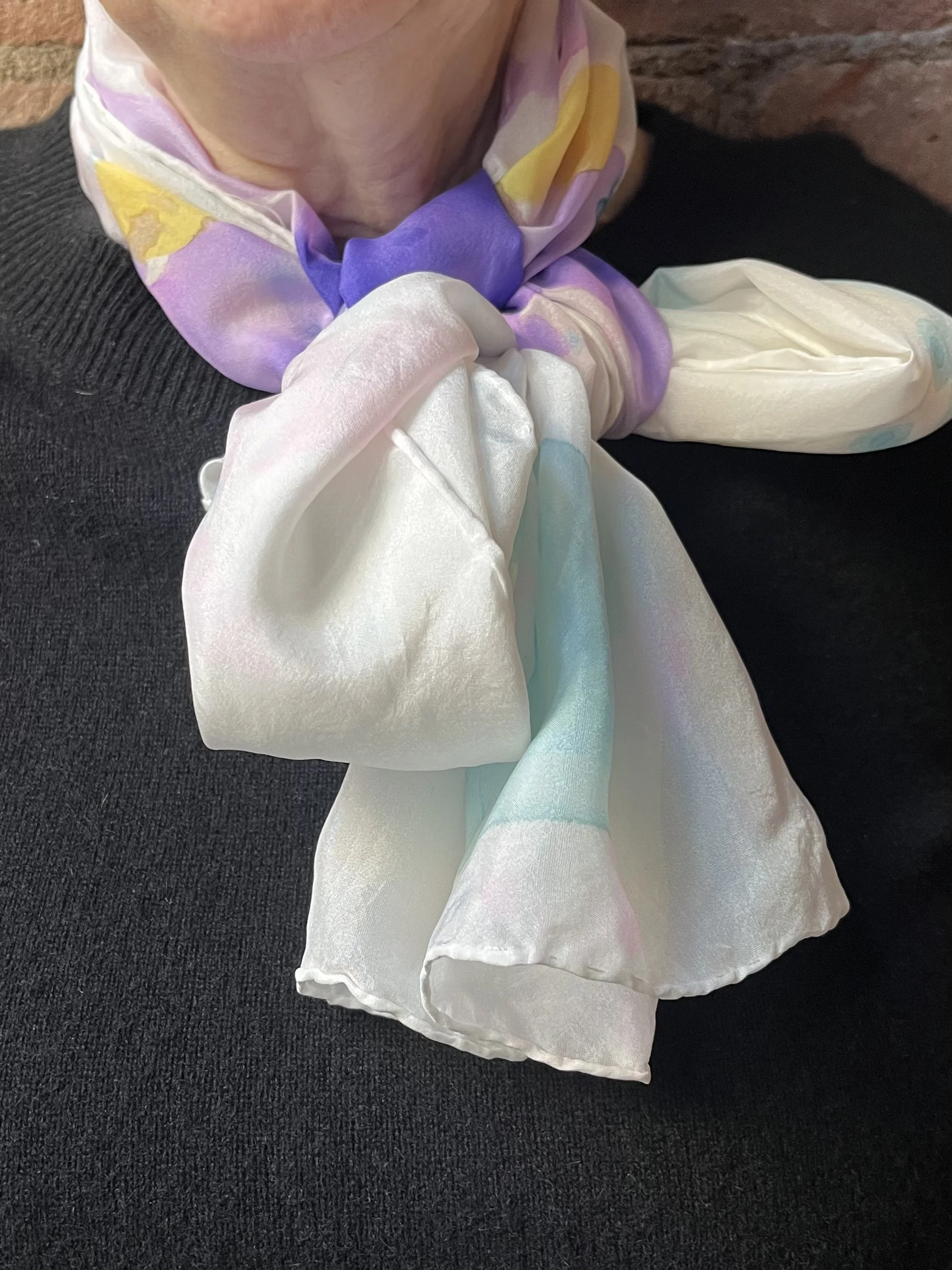 Habotai Silk is soft, light and translucent. Wear it in Spring, Summer, Fall and in Winter layer it under a wool scarf.